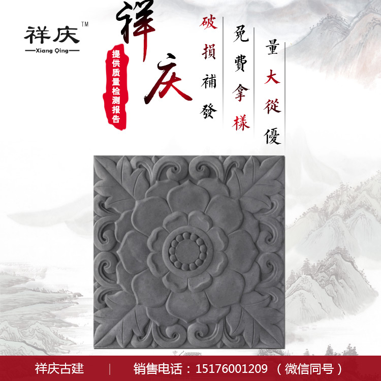 河北祥慶燒結(jié)瓦有限公司,始建于2009年,前身為河北鴻祥古建,公司于2017年因規(guī)模擴(kuò)大,正式成立河北祥慶燒結(jié)瓦有限公司,我公司主要生產(chǎn)琉璃瓦,青瓦,青磚,古建磚瓦,磚雕,古建筑材料。在生產(chǎn)琉璃瓦,青瓦,青磚,古建磚瓦,磚雕,古建筑材料的過程中,選料精挑細(xì)選,嚴(yán)格按照生產(chǎn)要求進(jìn)行調(diào)配。在生產(chǎn)過程中,我們嚴(yán)格 把關(guān),層層監(jiān)管,責(zé)任到人,以確保燒制的琉璃瓦,青瓦,青磚,古建磚瓦,磚雕,古建筑材料的質(zhì)量達(dá)到客戶滿意。我廠下設(shè)青磚廠和青瓦廠兩個(gè)廠區(qū),專業(yè)生產(chǎn)員工30名另有專業(yè)的施工隊(duì)伍和管理團(tuán)隊(duì)。